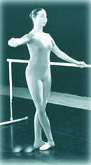 4 x battement tendu derriere, full degage away from the barre, open side close to the Fifth Position and passé for changing leg to the back.