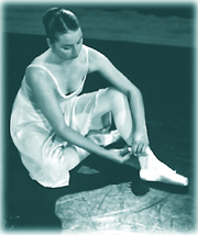 Battement Fondu - striking the foot while sinking or melting gently down into a bend on one leg.